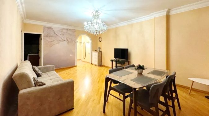 A 3-room apartment on Tigran Mets avenue is currently  for rent . The apartment has been fully renovated, an individual heating boiler and air conditioner have been installed. It is fully furnished with modern, comfortable furniture and is equipped with appliances. There is an open balcony with a view of the street.