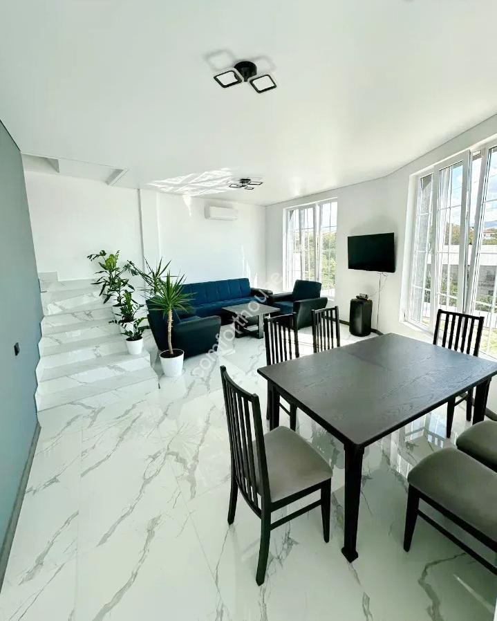 A two-story house in the village of Arinj is for sale. The house is fully renovated and completely fenced. The total land area is 323 sq m, the building area is 128 sq m. The house is fully insulated, the cladding is decorative plaster. There is a large storage room and parking for 3 cars in the yard. It is sold with furniture and appliances.