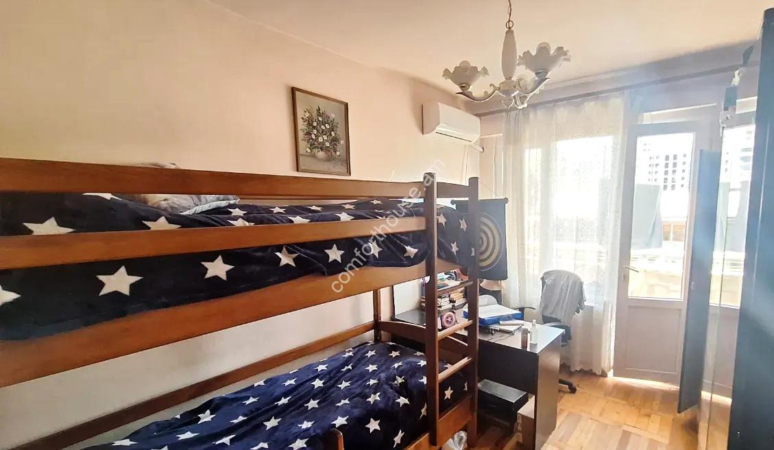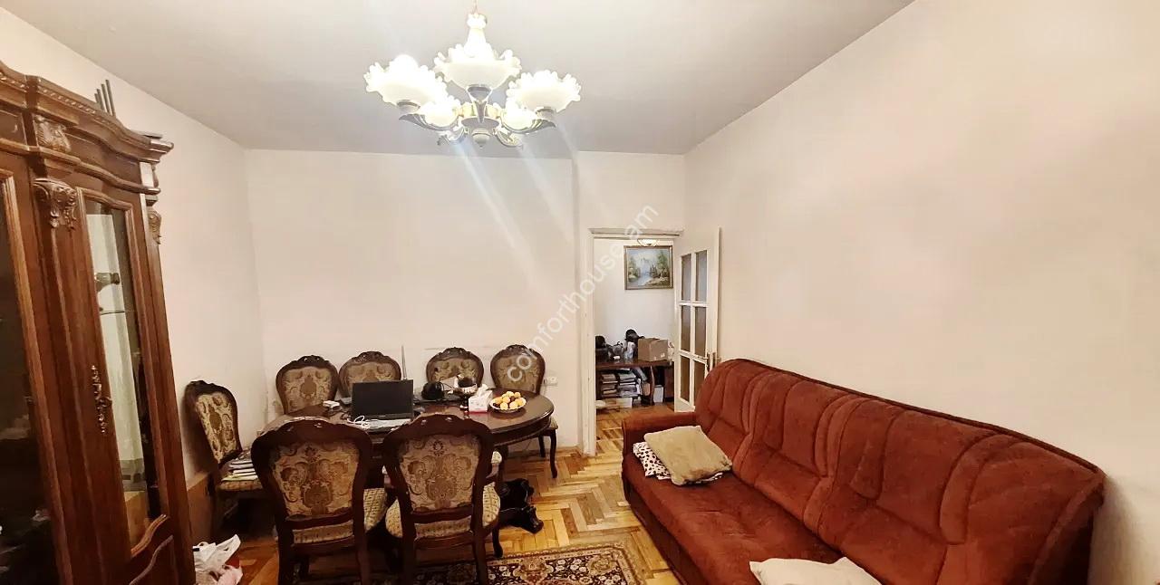 A 3-room apartment on Mamikonyants street is for sale. The apartment is in an old, clean condition, has 2 air conditioners, a heating boiler, and an open balcony. The apartment is being sold with furniture and appliances.