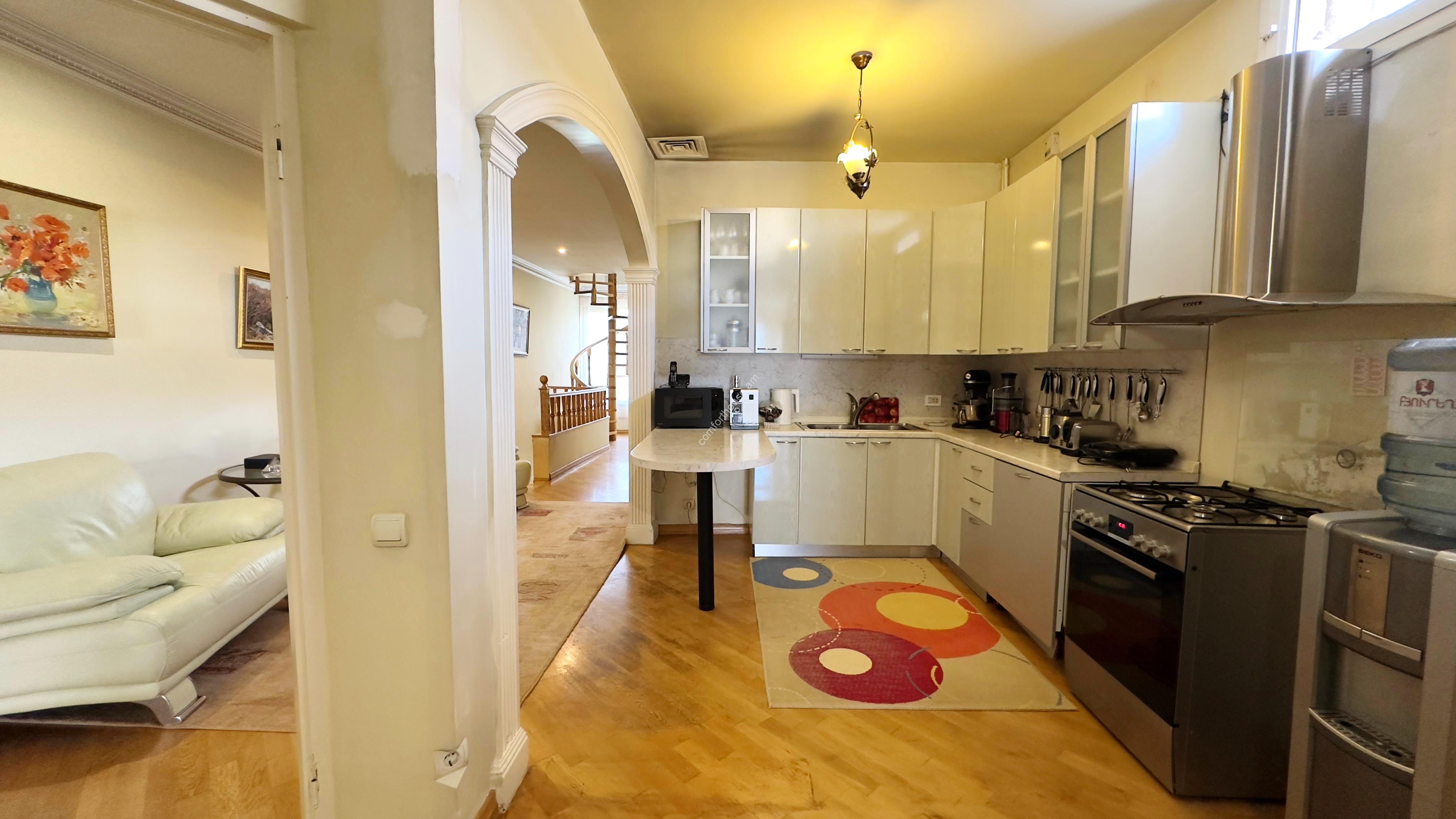 A three-story house in Nor Aresh is for sale. The total land area is 251 sq m, the building area is 243 sq m. The house has been renovated. There are 2 living rooms, 3 bedrooms, a storage area, 3 bathrooms, a garage for one car, a swimming pool, and a small yard.