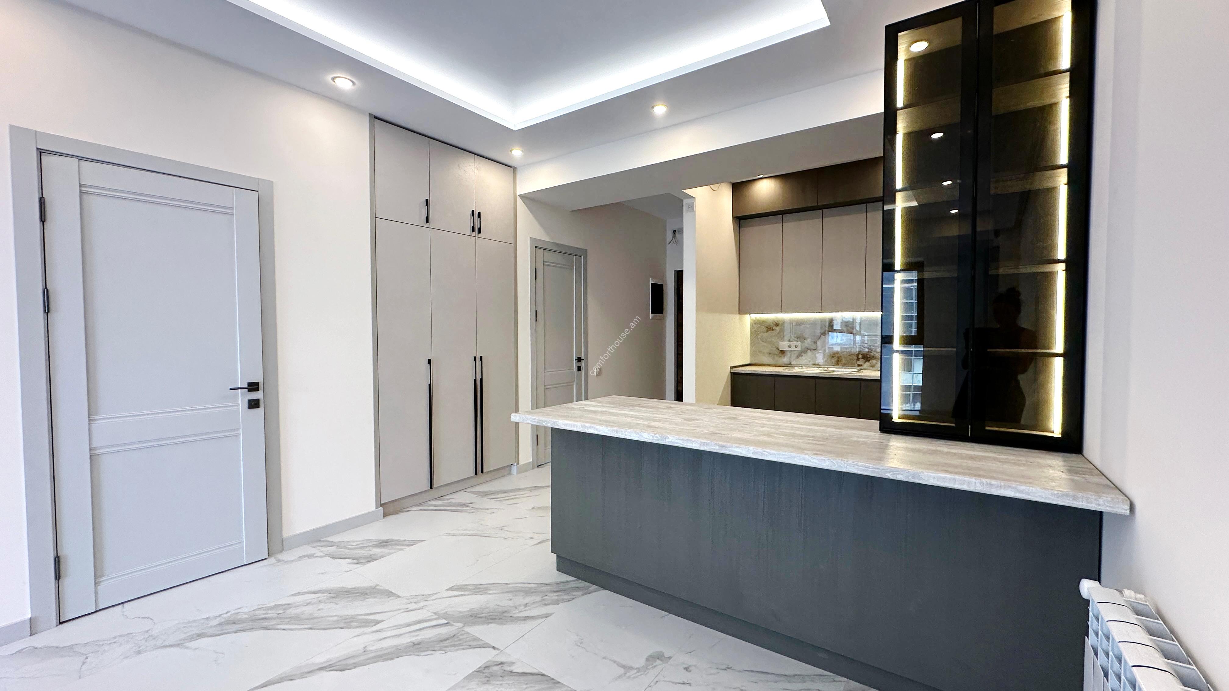 A 3-room apartment on Komitas avenue is for sale. The apartment has been fully renovated and is not yet inhabited. Individual heating has been installed, stained glass windows have been installed, there is an open balcony, kitchen furniture and appliances.