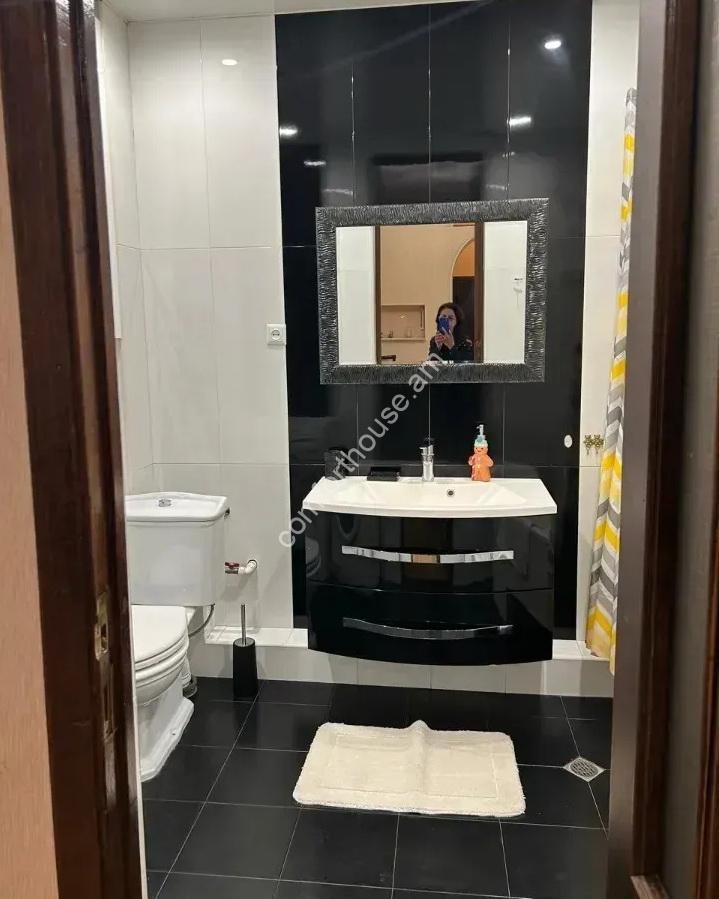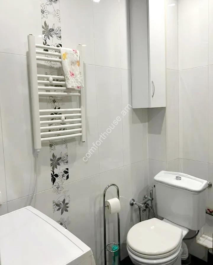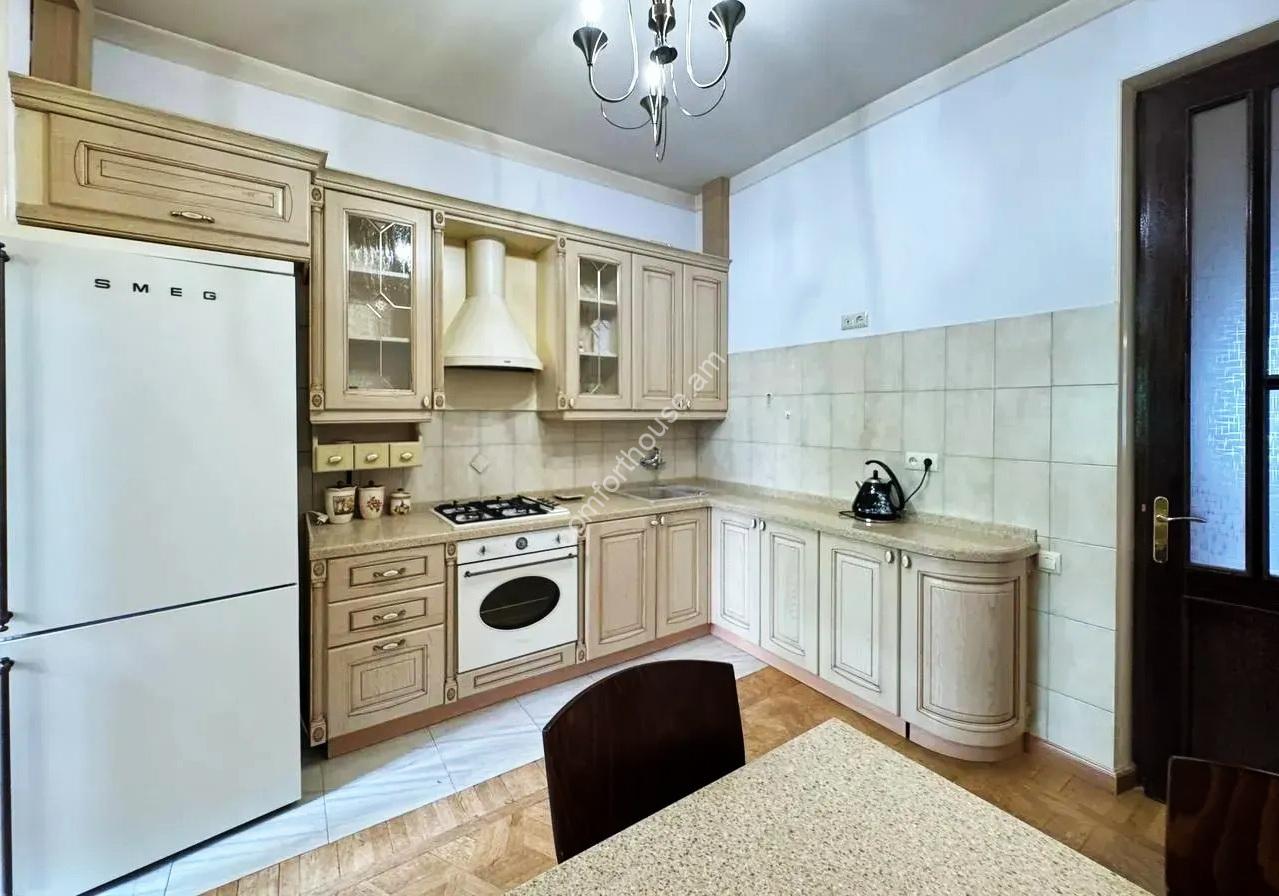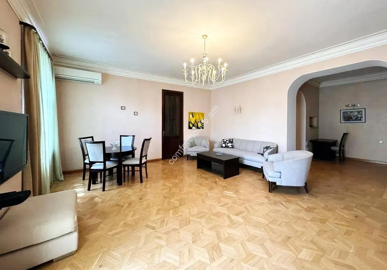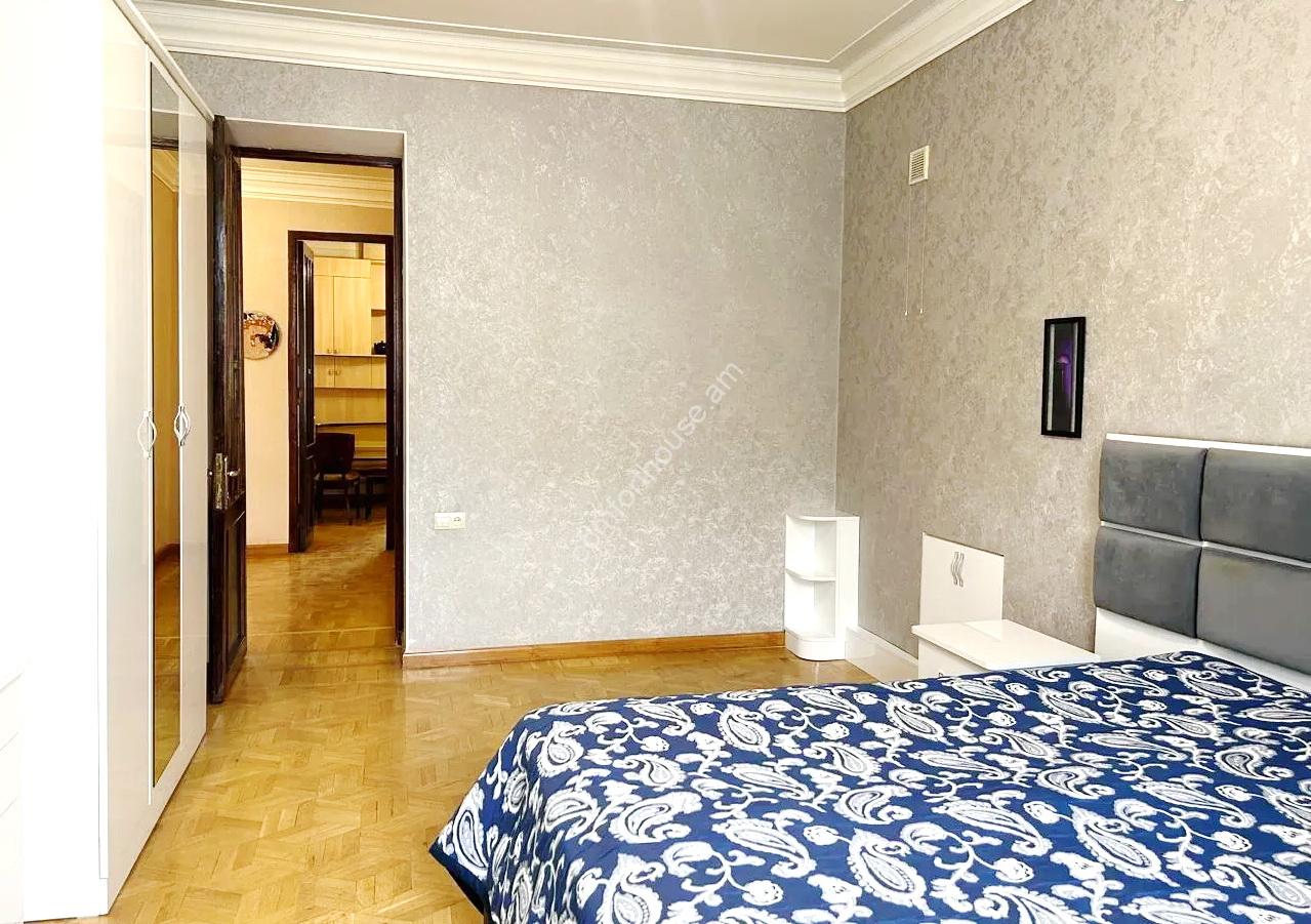 A 4-room apartment on Tumanyan street is for rent . The apartment has been fully renovated. An iron door, euro windows, and air conditioning have been installed. It is heated by a gas boiler. The bathroom is tiled and equipped with plumbing fixtures. There is an open balcony. The apartment is equipped with furniture and appliances.