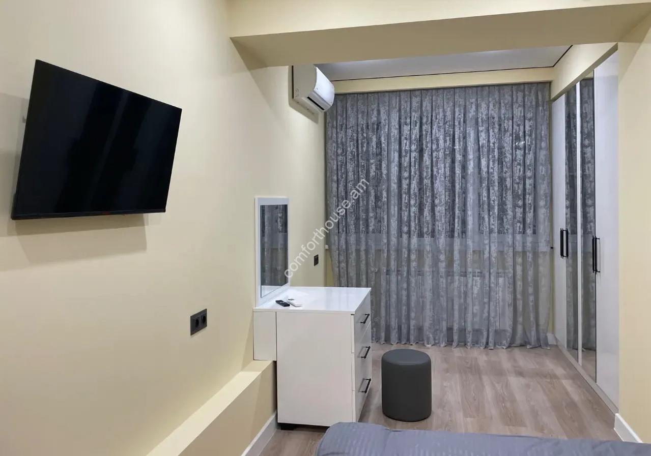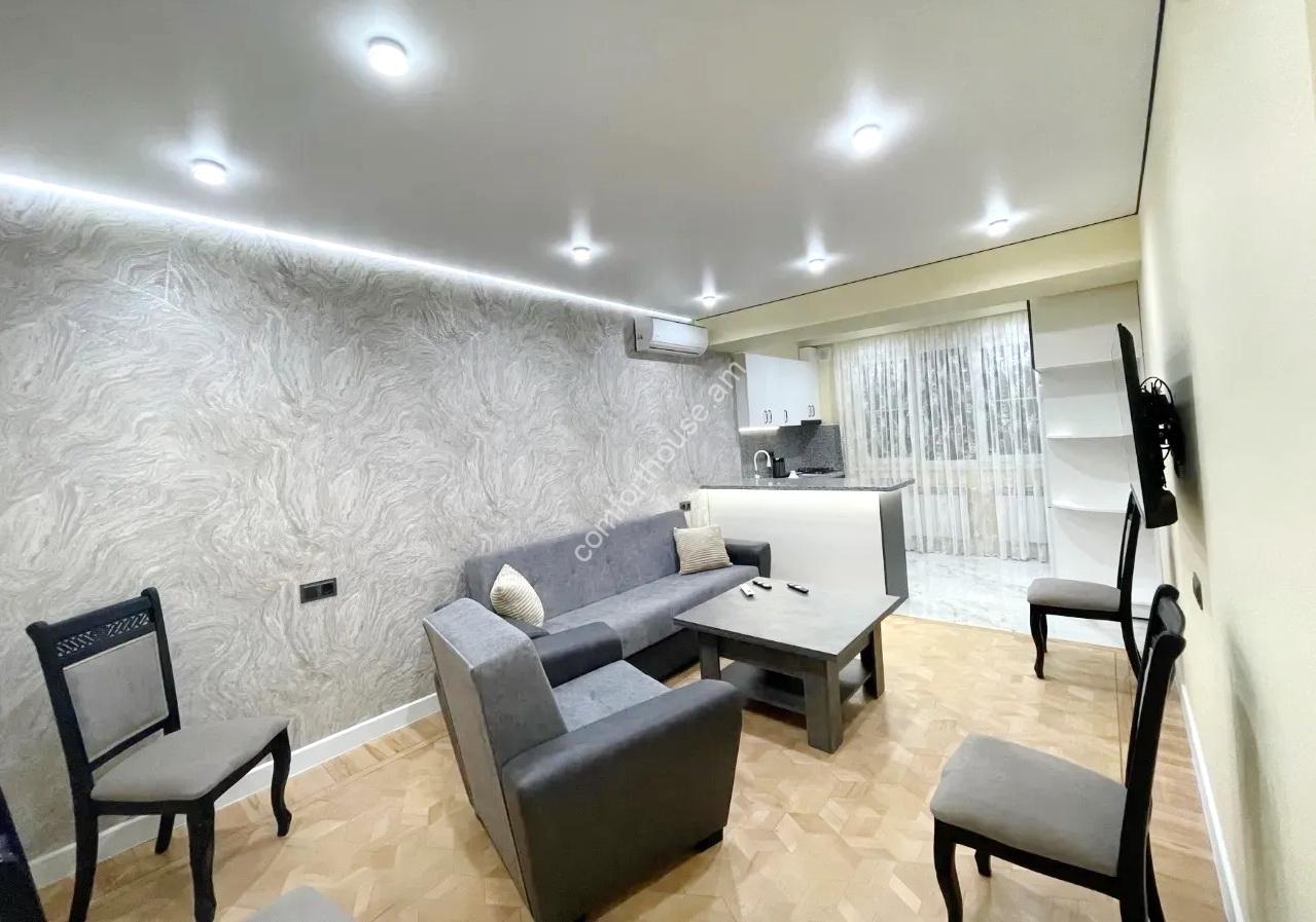 A 3-room apartment on Charents street is for rent . The apartment has been fully renovated, has 2 air conditioners, a heating boiler, is furnished with new furniture, and is equipped with appliances.