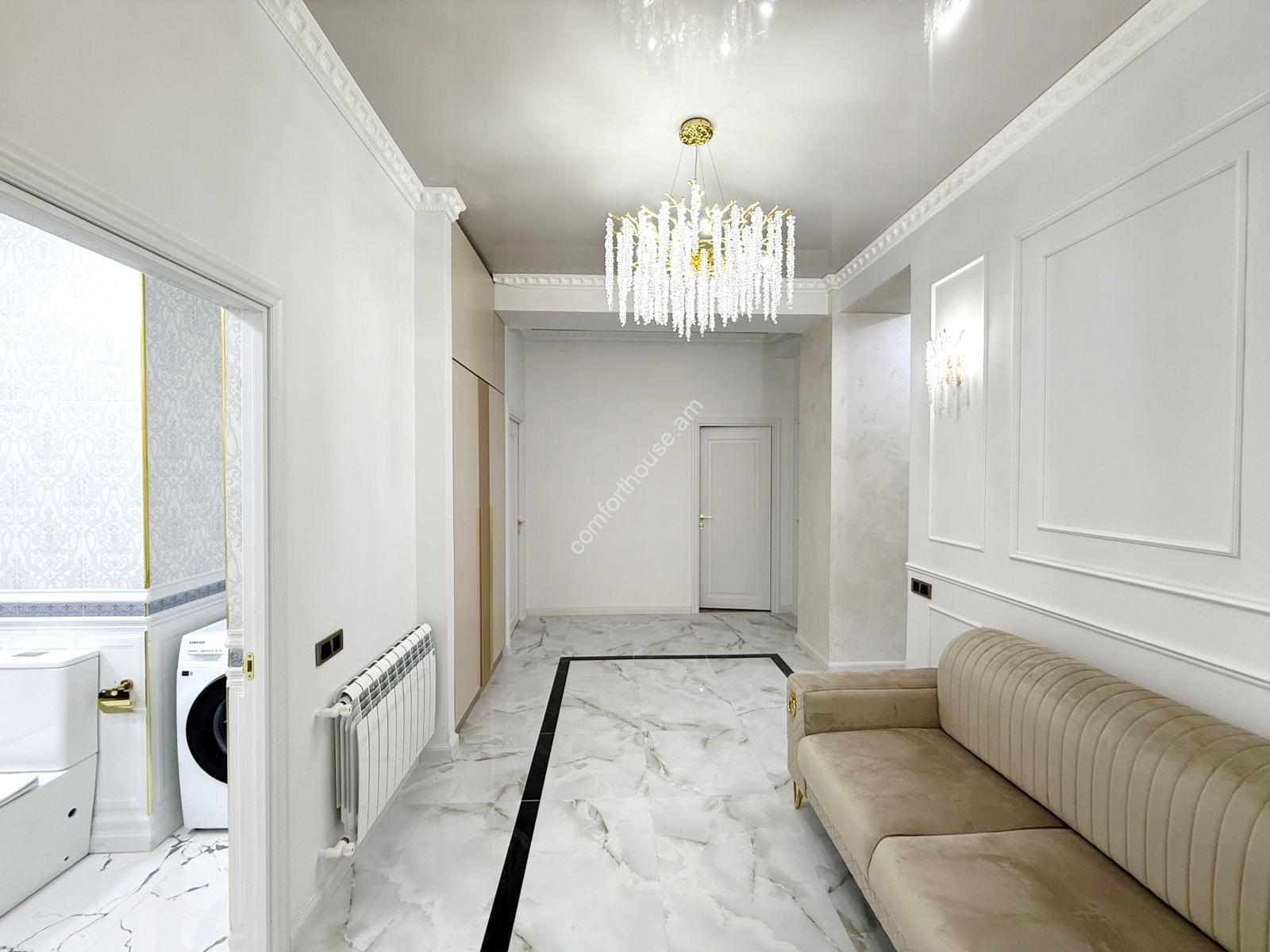 For sale a 4-room apartment on Adonts street. The apartment has been fully renovated and is not yet inhabited. Central heating has been installed, there are 3 bedrooms, 2 bathrooms, 3 open balconies. It is sold with new, comfortable furniture and appliances.