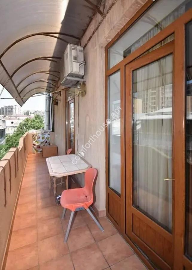 A 3-room apartment on Mashtots avenue is for rent . The apartment is fully renovated, equipped with furniture and appliances, and has a spacious open balcony.