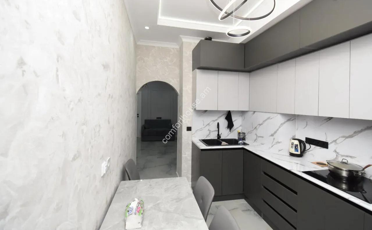 A 3-room apartment on Adonts street is for rent . The apartment has been fully renovated and is not yet occupied. It is fully furnished and equipped with appliances.