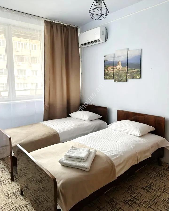 A 3-room apartment on Saryan street is for rent. The apartment is in good condition, furnished and equipped with appliances.