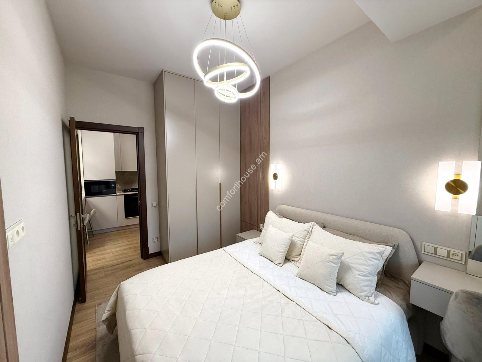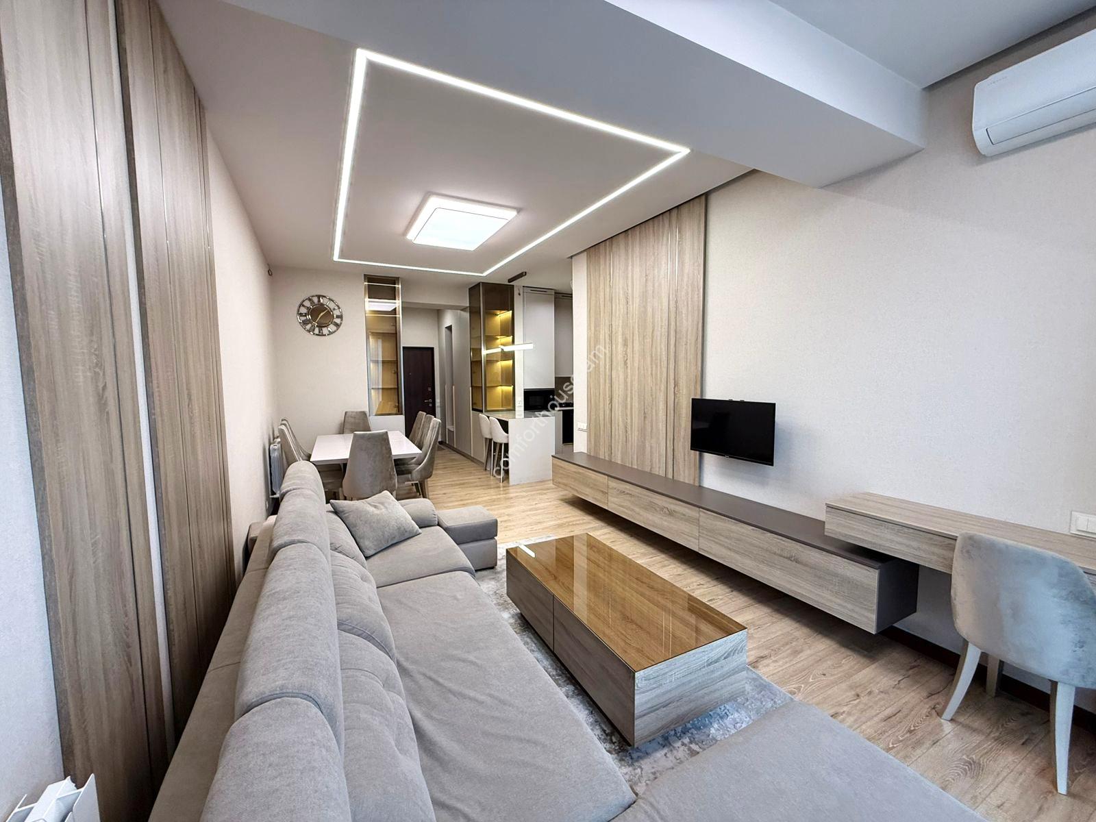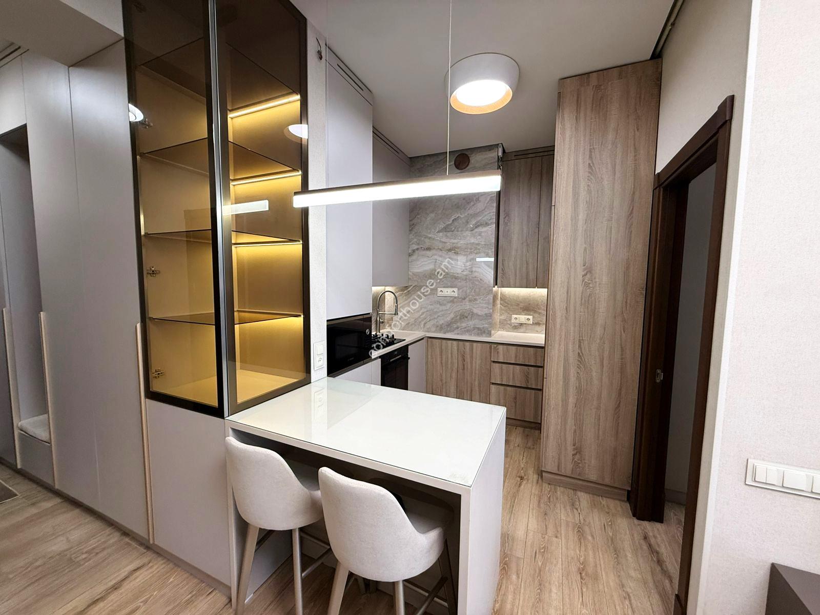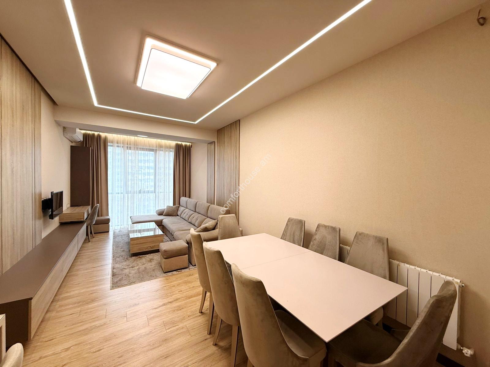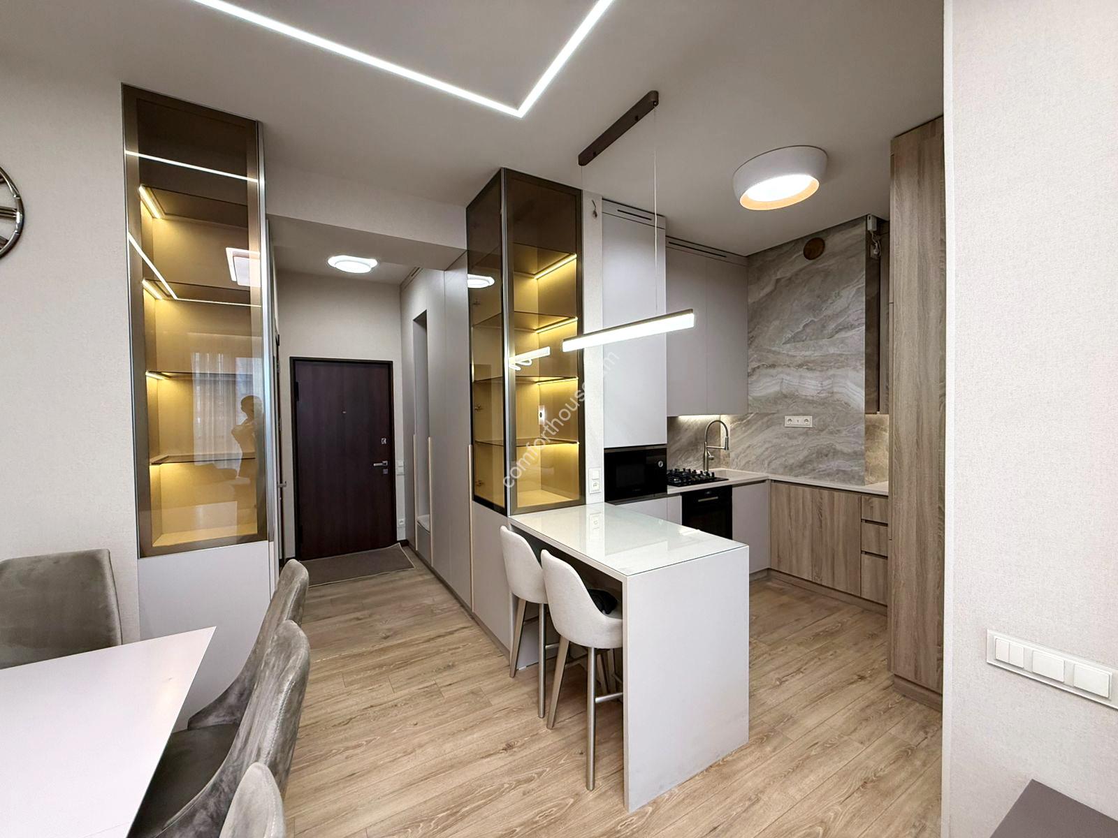 A 2-room apartment on Anastas Mikoyan street is for rent. The apartment has been fully renovated and is not yet occupied. It is fully furnished with modern furniture and equipped with modern appliances.