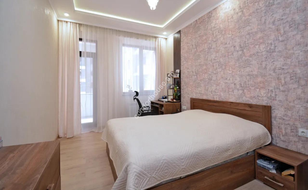 For sale is a 3-room apartment on Melik Melikyan street. The apartment is fully renovated, has individual heating, and has an open balcony. It is sold with furniture and appliances. Nearby there is a school, kindergarten, bus stop, and shops.